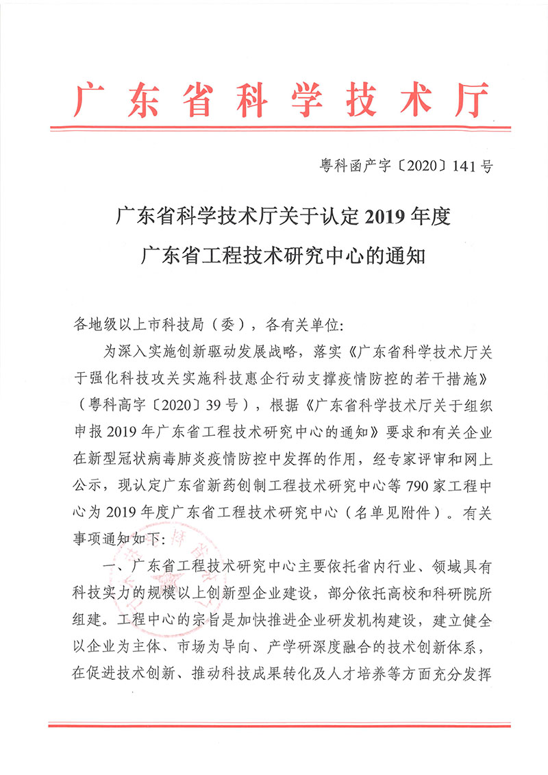 jrs直播吧机械制造有限公司于2019年认定为广东省工程技术研究中心